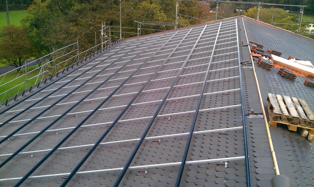 Bild09_DCKabelzufuehrungWestdach.jpg Bild10_KompletteUnterkonstruktionWestdach.jpg Bild11_ErteLageUnterkonstruktionZentraldach.jpg Bild12_PanelverlegungWestdach.jpg